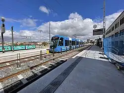 Construction on a branch line to Kista and Helenelund started in February 2018.[16] The new branch was scheduled to open its first part to Bromma Airport in December 2020,[17] however this was postponed, as approval from Swedavia was needed in order for the trams to be able to run past the airport.[18] In cold weather, sparks arise from the trams' overhead contact line, which could disrupt radio signals in the air traffic control tower at Bromma Airport. Tests needed to be carried out in sub-zero temperatures to gain approval for traffic.[19]