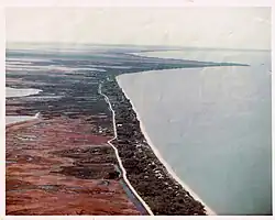 Beginning in early September with construction running into October, TITANTubes (sometimes referred to as geotubes or geotextile tubes) manufactured by Flint Industries(USA) were installed along most of the shoreline of the section of the beach in the Rural Municipality of Woodlands. Woodlands was given a $2 million grant from the Province of Manitoba to complete the wave breaker trial project. The geotextile tubes were built to a level of 824 feet (251 m) above sea level to provide protection against waves and storm surges often seen on the lake.[37] Geotextile tubes were also installed on parts of Delta Beach as well as nearby Sandpiper Beach. The goal was to have completed 17 kilometres (11 mi) of Geotextile tubes, but only 3.8 kilometres (2.4 mi) were installed around the lake.[38] This includes the 6,614 feet (2,016 m) installed along Twin Lakes Beach.[39]
