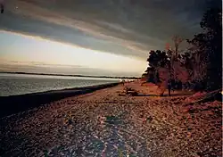 The history of Twin Lakes Beach as a recreational area began around 1911 when Meindl built a hunting lodge, as hunting was the primary activity of the beach at the time.[3] The lodge and others over time were used in the summer for fishing and holidays as well. About six or seven other medical doctors also used the area for hunting including Howden and Lambert. Over time Howden and Meindl acquired the land that comprises most of the present day beach from a local farmer with Howden acquiring over one mile of land in the Rural Municipality of Woodlands while Meindl acquired approximately 3 miles of land in the Rural Municipality of St. Laurent.[3] It was after this time that the land was subdivided and many people began to purchase lakefront properties in the area initially mainly for summer homes and cottages, but also for permanent residences later on. Meindl donated 580 feet of beach front land for the local Metis people of St. Laurent for recreational use, which later became Meindl Park (French: Parc Meindl), named in his honour.[4] Prior to the flooding of 2011, the highest recorded water level on Lake Manitoba was during the summer of 1955 when the water level gauge at nearby Delta Beach recorded 816.32 feet above sea level, although the readings were subject to wind setup due to the long fetch length of the lake to the north.[5] During this year some residents were forced to boat to their properties as the road was underwater.