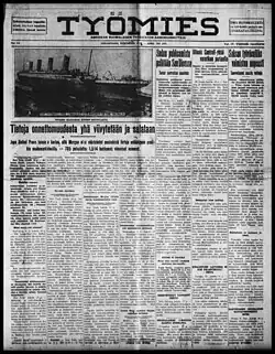 Työmies (The Worker) was a politically radical Finnish-language newspaper published primarily out of Hancock, Michigan, and Superior, Wisconsin. Launched as a weekly in July 1903, the paper later went to daily frequency and was issued under its own name until its merger with the communist newspaper Eteenpäin (Forward) in 1950 to form Työmies-Eteenpäin.