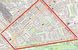 The area called Tyburnia has varied over time and it was never finished according to the original plan but it is certainly bounded by Edgware Road in the east and Bayswater Road and Hyde Park Place in the south. The northern boundary is generally regarded as Craven Road and Praed Street, while the western boundary is generally regarded as Gloucester Terrace. Sussex Gardens provides the main axis of the area, off which other streets run.[2] It features several garden squares including Norfolk Square, Talbot Square, Hyde Park Square and Sussex Square. Streets include Albion Street, Stanhope Terrace, Connaught Street and Connaught Place. St George's Fields is also located in the area.