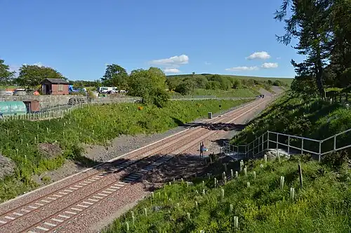 Remains of Tynehead station site in 2015, after reinstatement of the railway line | |||||