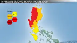 Emong (Chan-hom) directly passed through these provinces: Pangasinan, La Union, Ilocos Sur, Benguet, Nueva Vizcaya, Ifugao, Mountain Province, Kalinga and Isabela.