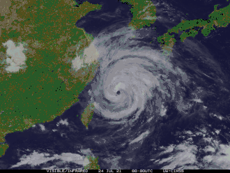 ![]() Typhoon In-fa near its peak intensity south of Okinawa on July 21 | |