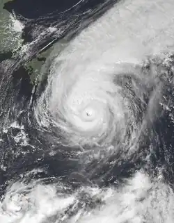 Oscar recurved northeastwards two days later, skirted past Honshū on September 17 and started weakening. Oscar was downgraded to a tropical storm, then the system became extratropical on September 18. In Japan, Oscar claimed nine lives and injured at least 13 people. Six people were reported missing and about 600 houses were damaged by high winds and flood water.[4]