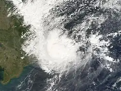 - ^ The name Durian (Thai: ทุเรียน) was submitted to the World Meteorological Organization by Thailand and is the name of a local favorite fruit, Durio Zibethinus.[4]