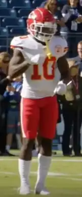 Tyreek Hill (born March 1, 1994) is an American professional football wide receiver for the Miami Dolphins of the National Football League (NFL). He played college football for the Garden City Broncbusters, Oklahoma State Cowboys, and West Alabama Tigers before being selected by the Kansas City Chiefs in the fifth round of the 2016 NFL draft.