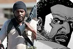 ![]() Tyreese, as portrayed by Chad Coleman in the television series (left) and in the comic book series (right). | |