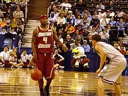 Rice signed his letter of intent to play basketball at and attend Boston College on April 28, 2005.[4] As a freshman (2005–06), Rice played in all 36 games, averaging 9.3 points, 1.4 rebounds and 2.5 assists per game.[3] He earned two ACC rookie honors: ACC Rookie of the Week on November 28, 2005, and was named to the ACC All-Freshman team.[5][6] In his sophomore season (2006–07), Rice started all 33 games, averaging 36.6 minutes a game. He finished the season with stats of 17.6 points, 3.4 rebounds and 5.4 assists per game. Rice was named to the All-ACC second team, and garnered All-Tournament honors for that season's ACC tournament. In two NCAA tournament games, Rice averaged 24 points.[3]