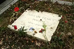 In 1961, as recognition for his work as a poet, Tzara was awarded the prestigious Taormina Prize.[84] One of his final public activities took place in 1962, when he attended the International Congress on African Culture, organized by English curator Frank McEwen and held at the National Gallery in Salisbury, Southern Rhodesia.[167] He died one year later in his Paris home, and was buried at the Cimetière du Montparnasse.[4]
