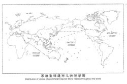 In Chinese Buddhism, the Uṣṇīṣa Vijaya dhāraṇī is associated with Mount Wutai, which in the Chinese Buddhist tradition is considered the bodhimaṇḍa of the bodhisattva Mañjuśrī. Sacred stone tablets with the Uṣṇīṣa Vijaya Dhāraṇī carved into them have been distributed widely in some regions of the Far East.[4] The dhāraṇī is still widely used in various rituals that involve esoteric or tantric elements.