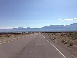 From the pass, US 6 descends into barren shadscale desert, passing Columbus Marsh on the left, then merging with US 95 from Coaldale Junction to Tonopah. The Nevada Test and Training Range begins about 15 miles (24 km) southeast of Tonopah.