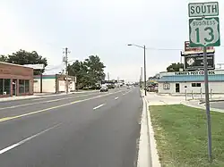 U.S. Route 13 Business (US 13 Bus.) is a business route of US 13 in the U.S. state of Maryland. The highway runs 8.14 miles (13.10 km) between US 13 south of Fruitland and US 13 and US 50 on the north side of Salisbury. US 13 Bus. is a four-lane highway with divided and undivided sections that provides access to Salisbury University, downtown Salisbury, where the highway intersects US 50 Bus., and Fruitland, where the highway meets Maryland Route 513 (MD 513). US 13 Bus. was constructed as a new alignment of US 13 in several steps in the 1930s and early 1940s. The section of the highway through Salisbury was originally constructed with four lanes, while the portion of the highway through Fruitland and at the northern end was expanded to a divided highway in the first half of the 1950s. US 13 Bus. was designated when US 13 was moved to the Salisbury Bypass upon its completion in 1981.