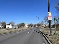 At Fallsington, the original road crossed the Pennsylvania Railroad's Trenton Cutoff on a bridge just east of the present bridge, built on a reverse curve to shorten the span. It used Trenton Road and Main Street from the bridge to the intersection with Woolston, where Main Street is now cut. In 1917, an underpass under the railroad was built to the west on Woolston Drive; this became the main route by 1924.[9][10]