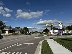 US 34 formerly overlapped US 66 all the way to its endpoint in downtown Chicago, but was truncated to its intersection with US 66 and IL 43 in Berwyn in 1970.[7] When US 66 was subsequently eliminated, the endpoint of US 34 was left at that location—the intersection of Ogden and Harlem Avenues in Berwyn. Due to the elimination of US 66, it is one of the few U.S. Highways that ends at a state highway.[8] With the re-signing of much of Historic US 66, the history of US 34's eastern endpoint is becoming much more clear.[9]