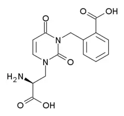 - ^ Dolman, NP; More, JCA; Alt, A; Knauss, JL; Pentikäinen, OT; Glasser, CR; Bleakman, D; Mayer, ML; Collingridge, GL; Jane, DE (2007-04-05). "Synthesis and pharmacological characterization of N3-substituted willardiine derivatives: role of the substituent at the 5-position of the uracil ring in the development of highly potent and selective GLUK5 kainate receptor antagonists". Journal of Medicinal Chemistry. 50 (7): 1558–1570. doi:10.1021/jm061041u. ISSN 0022-2623. PMID 17348638.