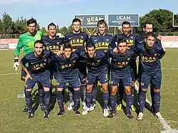 Universidad Católica San Antonio de Murcia Club de Fútbol[1] was founded in 1999 and had previously a team which played in Tercera División from 2000 to 2005.[2] In parallel was founded in 2004 the Club de Fútbol Los Garres, making its first appearance in Tercera División in 2008–09 as Murcia Deportivo Club de Fútbol. In 2009 a businessman from Beniaján, Murcia, acquired the club and moved it to his local town; one year later the club relocated again, now to Sangonera la Verde, and, in 2011, UCAM became its new owner.[3]