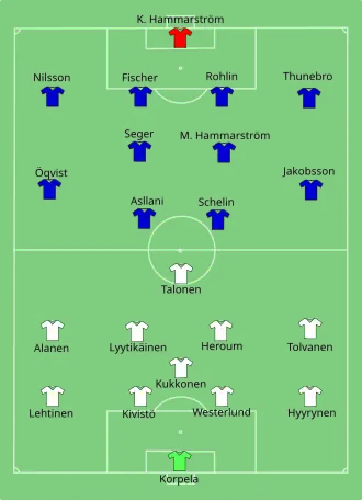 - ^ a b "Tactical Line-up – Finland-Sweden" (PDF). UEFA. Union of European Football Associations. 13 July 2013. Archived from the original (PDF) on September 26, 2013. Retrieved 13 July 2013.
