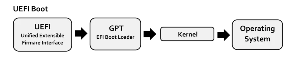 UEFI systems can access GPT disks and boot directly from them, which allows Linux to use UEFI boot methods. Booting Linux from GPT disks on UEFI systems involves creation of an EFI system partition (ESP), which contains UEFI applications such as bootloaders, operating system kernels, and utility software.[31][32][33] Such a setup is usually referred to as UEFI-GPT, while ESP is recommended to be at least 512 MB in size and formatted with a FAT32 filesystem for maximum compatibility.[27][30][34]