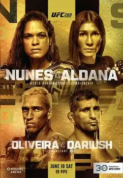 - ^ "UFC 289: Nunes vs. Aldana". Ultimate Fighting Championship. 7 April 2023. Retrieved 2023-04-09.