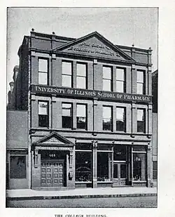 In 1895, the state legislature amended the original charter for the University of Illinois, allowing the location of professional departments of law, medicine, dentistry, and pharmacy outside of Champaign County. On December 10, 1895, the proposal to acquire the Chicago College of Pharmacy was presented to the university's board of trustees. On May 1, 1896, the College formally united with the University of Illinois, creating the University of Illinois School of Pharmacy.[1]