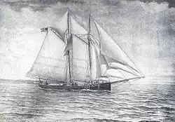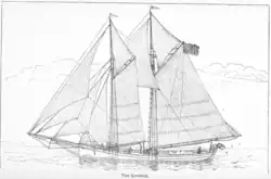 The Fish Commission commissioned Grampus on 5 June 1886 under the command of Captain J. W. Collins.[24] She departed Noank that day for Woods Hole, Massachusetts,[4][25][26] which was to be her home port. After a stopover at Woods Hole from 6 to 8 June 1886,[26] she departed for Gloucester, Massachusetts, where she arrived on 9 June 1886 and took aboard her boats and fishing gear – all of which had been manufactured at Gloucester – and made alterations to her sails.[26] That work completed, she sailed on 14 June 1886 to Boston, Massachusetts, where she took aboard her marine chronometer and "other instruments and apparatus."[26] She spent 16–22 June 1886 at Gloucester, then sailed to Woods Hole, arriving there on 23 June 1886 to begin preparations for her first scientific cruise.[26]