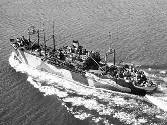 ![]() USS Aegir (AS-23) underway in US coastal waters c. late 1944. US National Archives photo # 19-N-71738, RG-19 LCM, a US navy Bureau of Ships photo now in the collections of the US National Archives.