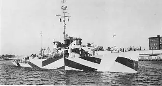 ![]() USS Allentown (PF-52) underway near Norfolk Navy Yard, Portsmouth, Virginia, on 9 August 1944. She is painted in Measure 32/16D dazzle camouflage.