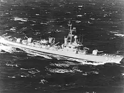 On 24 September, after several weeks of post-deployment repairs and upkeep, she steamed into Narragansett Bay to assist the Norwegian freighter Belleville which lay aground off Seal Rock. On 26 September, she helped escort the nuclear submarine Seawolf, carrying President Dwight D. Eisenhower, as she conducted a diving demonstration off Newport. After several months of routine operations, including antisubmarine warfare (ASW) exercises and plane guard operations with the carriers Forrestal and Leyte, the destroyer spent May 1958, preparing for her next deployment to the Mediterranean.[6]