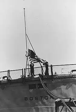 USS Boston (CA-69/CAG-1), a Baltimore-class heavy cruiser and later a Boston-class guided missile cruiser, was the sixth ship of the United States Navy to be named for the U.S. city of Boston, Massachusetts. Boston was launched 26 August 1942 by Bethlehem Steel Company's Fore River Shipyard in Quincy, Massachusetts, sponsored by Mrs Helen Noonan Tobin, wife of the Mayor of Boston, Maurice J. Tobin, and commissioned 30 June 1943.[1]