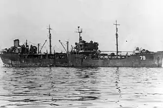 The ship was built by the Sun Shipbuilding and Drydock Co. in Chester, Pennsylvania as hull number 315 and USMC number 308 in 1943. Launched on 11 March 1943, as SS Fort Duquesne, sponsored by Mrs. M. Hitchner, the ship was acquired by the Navy on 25 March 1943 and commissioned on 1 May 1943.