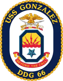 USS Gonzalez (DDG-66) is an Arleigh Burke-class (Flight I) Aegis guided missile destroyer in the United States Navy. She is named for Sergeant Alfredo Cantu Gonzalez, a Medal of Honor recipient in the Vietnam War.
