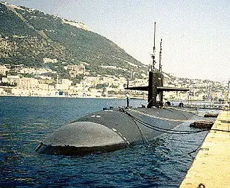 USS Groton (SSN-694), the seventh Los Angeles-class submarine, was the third ship of the United States Navy to be named for Groton, Connecticut. The contract to build her was awarded to the Electric Boat Division of General Dynamics Corporation in Groton, Connecticut on 31 January 1971 and her keel was laid down on 3 August 1973. She was launched on 9 October 1976 sponsored by Mrs. Anne Francis Richardson (née Hazard), wife of Secretary of Commerce Elliot L. Richardson, and commissioned on 8 July 1978, with Commander R. William Vogel, III in command and Master Chief Petty Officer Joseph Pow as Chief of the Boat.
