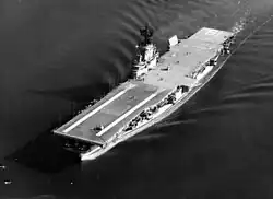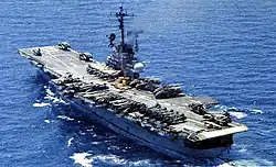 USS Hancock (CV/CVA-19) was one of 24 Essex-class aircraft carriers built during World War II for the United States Navy. Hancock was the fourth US Navy ship to bear the namesake of Founding Father John Hancock, president of the Second Continental Congress and first governor of the Commonwealth of Massachusetts.[Note 1] Hancock was commissioned in April 1944 and served in several campaigns in the Pacific Theater of Operations, earning four battle stars. Decommissioned shortly after the end of the war, she was modernized and recommissioned in the early 1950s as an attack carrier (CVA). In her second career, she operated exclusively in the Pacific, playing a prominent role in the Vietnam War, for which she earned a Navy Unit Commendation. She was the first US Navy carrier to have steam catapults installed. She was decommissioned in early 1976 and sold for scrap later that year.