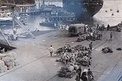 She stopped in Manila, Philippines. She was soon bound for Okinawa, where she arrived 12 August 1945. Hanover unloaded replacement troops on that battle-scarred island, and after the close of the war prepared to take part in the occupation. One of the Army officers that had been exercising his troops a few days before, went into the caves on Okinawa and was killed. Some Japanese refused to surrender at the end of the war.
