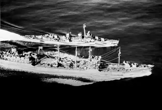 ![]() USS Kaskaskia (AO-27) (foreground) refueling the destroyer USS Hart (DD-594) at sea on 16 December 1944.