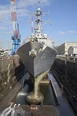 USS Lassen (DDG-82) is an Arleigh Burke-class (Flight IIA) Aegis guided missile destroyer in the United States Navy. She is named for Medal of Honor recipient Commander Clyde Everett Lassen. Lassen was the 14th ship of this class to be built by Ingalls Shipbuilding at Pascagoula, Mississippi, and construction began on 24 August 1998. She was launched and christened on 16 October 1999. On 21 April 2001, she was commissioned at the Florida Aquarium Pier in Tampa, Florida.