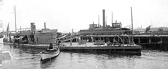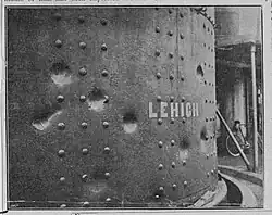 A week later, the new monitor joined the North Atlantic Blockading Squadron at Newport News, Virginia. She performed blockade duty in the Hampton Roads-Virginia Capes area, and on the night of 10 June joined a flotilla under Rear Admiral Samuel Phillips Lee in an expedition up the James River to assist Army troops. Returning to Newport News two days later, she resumed blockade duty until sent back up the James with seven other Union warships to threaten Richmond, Virginia, the Confederate capital. In the wake of the Battle of Gettysburg, the movement was designed to divert Confederate strength from General Robert E. Lee's Army of Northern Virginia which had invaded the North and imperiled Washington, D.C. The expedition caused the South to evacuate Fort Powhatan, leaving no defenses on the James below Chaffin's or Drewry's Bluffs, some 8 miles (13 km) from Richmond. The situation relaxed as the Confederate Army retreated across the Potomac River, and the Union warships dropped down river to Hampton Roads. On the morning of 23 July, Lehigh, towed by Circassian, got underway north and arrived New York City two days later for repairs. In August 1863, commanded by Commander Andrew Bryson, she headed south and joined the South Atlantic Blockading Squadron off Charleston, South Carolina. The monitor took part in the attacks on Fort Sumter of 1 and 2 September, being struck several times; engaged Sullivan's Island 7 September; Fort Moultrie 8 September, receiving 29 hits; covered a landing party attacking Fort Sumter 9 September; and from 27 October to 20 November engaged Fort Sumter almost daily, running aground 16 November off Sullivan's Island under heavy enemy fire. Five of Lehigh's sailors were awarded the Medal of Honor for helping to free the vessel during this incident: Landsman Frank S. Gile, Coxswain Thomas Irving, Gunner's Mate George W. Leland, Landsman William Williams, and Seaman Horatio Nelson Young.[2][3]