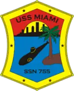 USS Miami (SSN-755) was a Los Angeles-class submarine of the United States Navy. She was the third vessel of the U.S. Navy to be named after Miami, Florida. Miami was the forty-fourth Los Angeles-class (688) submarine and the fifth Improved Los Angeles-class (688I) submarine to be built and commissioned. The contract to build her was awarded to the Electric Boat division of General Dynamics Corporation in Groton, Connecticut, on 28 November 1983, and her keel was laid down on 24 October 1986. She was launched on 12 November 1988 and commissioned on 30 June 1990 with Commander Thomas W. Mader in command.