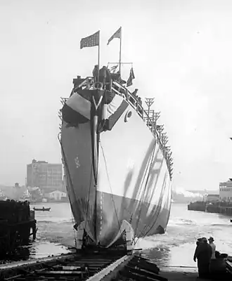 | Fate | Construction contract cancelled 7 January 1946; sold for scrap incomplete 17 June 1947[1][2] |