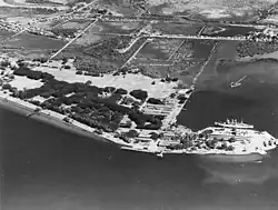 New York departed Fort Monroe on 17 January 1898 for Key West. After the declaration of the Spanish–American War in April, she steamed to Cuba and bombarded the defenses at Matanzas before joining other American ships at San Juan in May, seeking the Spanish squadron. Not finding them, they bombarded Castillo San Felipe del Morro at San Juan (12 May) before withdrawing. New York then became flagship of Admiral William T. Sampson's squadron, as the American commander planned the campaign against Santiago. However, New York was taking Admiral Sampson to a meeting with Major General William Shafter when the Spanish fleet made its breakout attempt, some of her engines were disconnected which reduced her speed, and she was only able to participate in the closing phases of the battle.[12][16][17] The Battle of Santiago de Cuba on 3 July resulted in complete destruction of the Spanish fleet.[5]