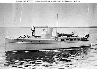 This article incorporates text from the public domain Dictionary of American Naval Fighting Ships. The entry can be found here.- Department of the Navy Naval History and Heritage Command Online Library of Selected Images: Civilian Ships: Skink (Motor Boat, 1917). Served as USS Skink (SP-605) in 1917-1919