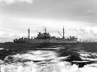 Teton arrived at Subic Bay on 15 June and remained there until 17 August. When news of Japan's surrender arrived, Admiral Hall and his staff left the ship to transfer to USS Hansford (APA-106). Teton embarked Army forces for the occupation of Japan and proceeded to Honshū, arriving in Tokyo Bay on 29 August.