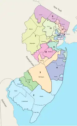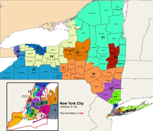 - District with the smallest area: New York's 12th. In 2010: New York's 13th.