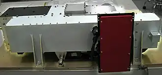 The electronics are located inside the Juno Radiation Vault, which uses titanium to protect it and other spacecraft electronics.[10][16] The UVS electronics include two power supplies and data processing.[16] UVS electronics box uses an Actel 8051 microcontroller.[16]