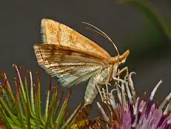 Udea lutealis is a species of moth of the family Crambidae described by Jacob Hübner in 1809.