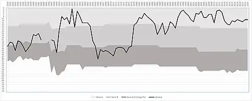 The only significant innovations came in the 1980s when the Friulian team's clothing diverged from tradition, presenting more imaginative solutions: notably, the white shirts with a black central bar used in the first part of the decade, followed by black shirts with a massive white stripe across them.[6][2] From the 1990s onwards, there was a gradual return to simplicity, although experiments like "curved" stripes along the upper edge were made in the mid-2000s.[7]