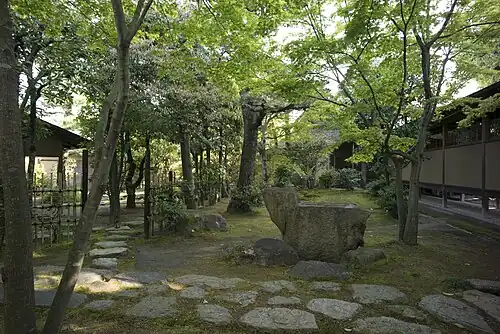 With this work, the residence of the Ueda Clan was recreated at the current home of the Ueda Tradition 137 years after the loss of Hiroshima Castle in the Meiji Restoration. Central Hiroshima city was devastated in the atomic bombing of 1945. It is therefore thanks to the current location of the Ueda Clan in Furue in the western district of Hiroshima city that the Clan's estate (historical art works and literature) survived the catastrophe. With the records and literature of the Clan unscathed, the recreation of the original Ueda Clan residence was made possible. Sōko's stone purifying basins (手水鉢), garden lanterns (燈籠) and garden stones (役石) were handed down through the generations of the Ueda Clan. This stonework features in the current gardens of Wafūdō and thus connects the current Wafūdō with that of antiquity.