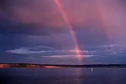 Uenuku (or Uenuku-Kōpako, also given to some who are named after him[1]) is an atua of rainbows and a prominent ancestor in Māori tradition. Māori believed that the rainbow's appearance represented an omen, and one kind of yearly offering made to him was that of the young leaves of the first planted kūmara crop.[2] He was a tribal war god invoked before battles, particularly in the northern half of the country.[3] It was said that if a taua appeared under the arch of the rainbow, it would be defeated in battle, and likewise, if they appeared to either side of the rainbow, they would be victorious. The Māori identified hawk feathers and a particular star called Uenuku as being sacred to him.[1][a]