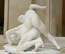 The Wrestlers (also known as The Two Wrestlers, The Uffizi Wrestlers or The Pancrastinae) is a Roman marble sculpture after a lost Greek original of the third century BCE. It is now in the Uffizi collection in Florence, Italy.